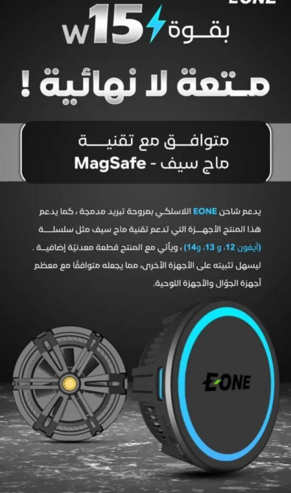 - شاحن لاسلكي بقوّة 15 واط مع مروحة تبريد مدمجة
